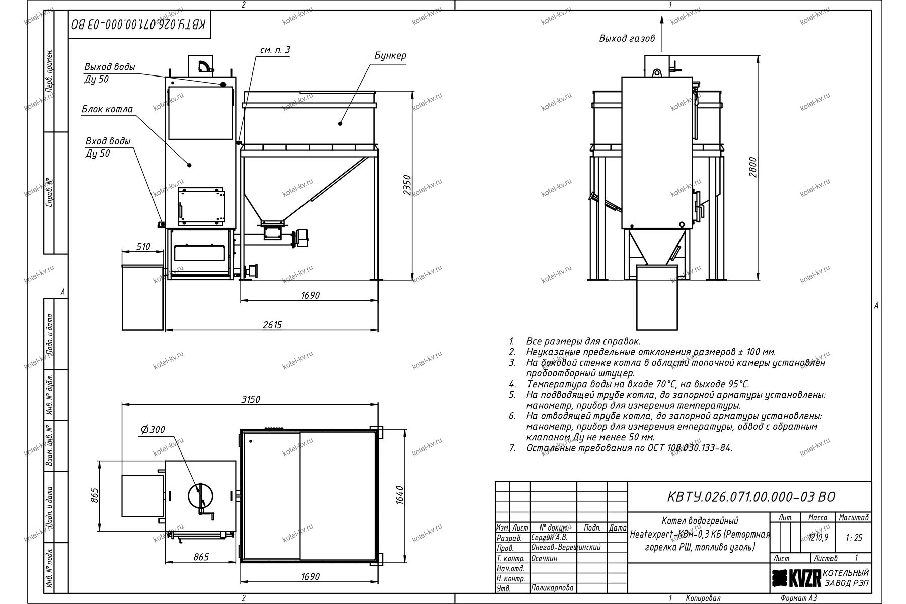 Конструкция автоматического котла на угле 0.3 МВт